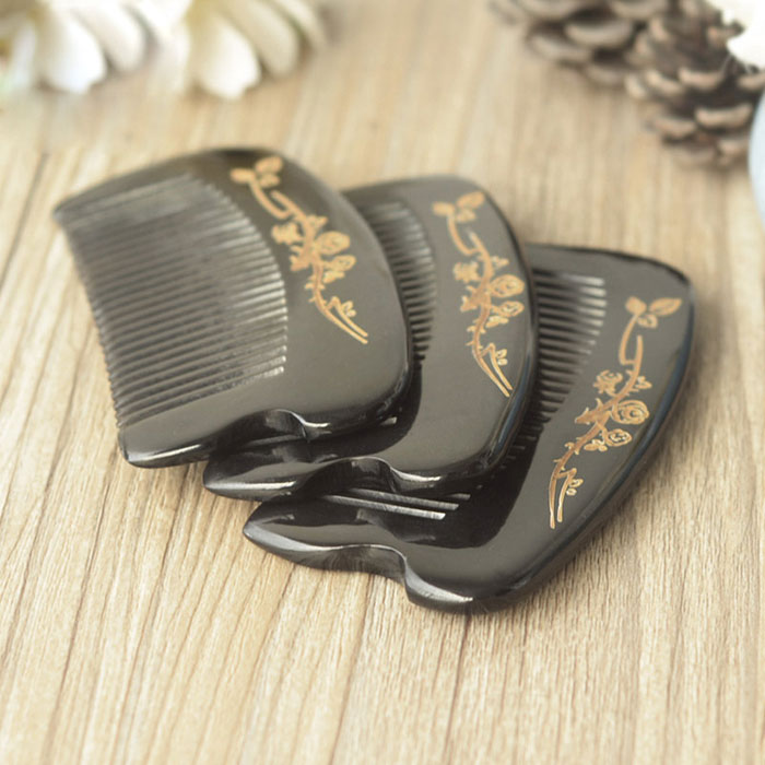 Buffalo horn carved flower bag comb